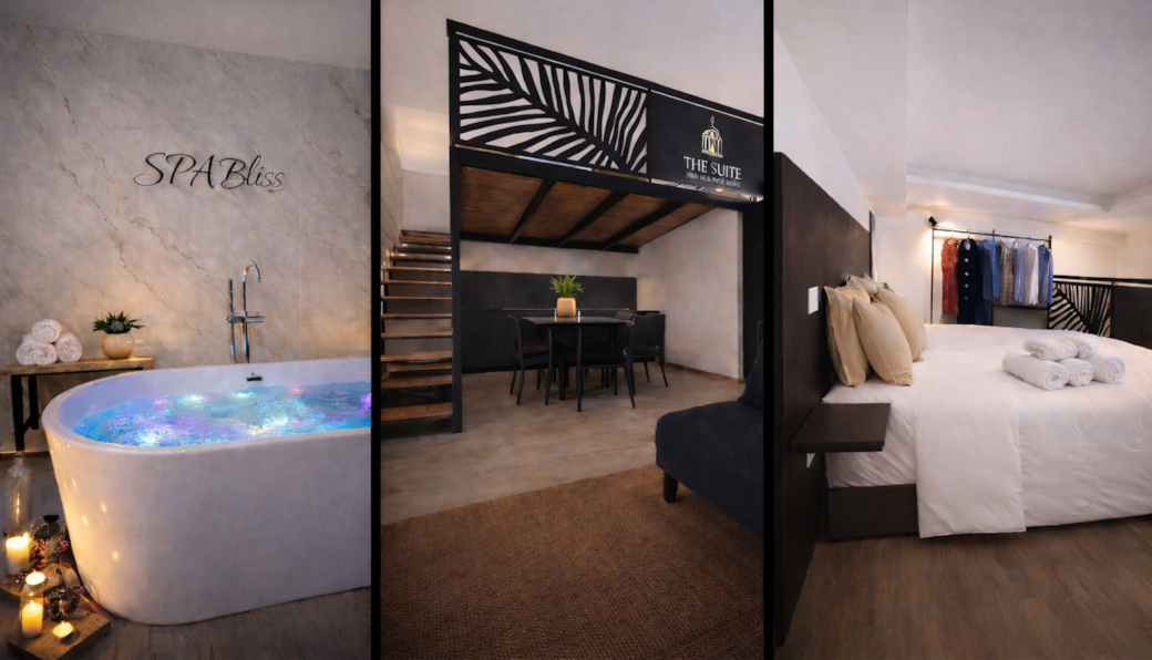 La suite offre 1 camera da letto, cucina attrezzata, zona living con TV, WiFi gratuito e aria condizionata. A rendere l’esperienza unica è la vasca idromassaggio, perfetta per momenti di benessere.